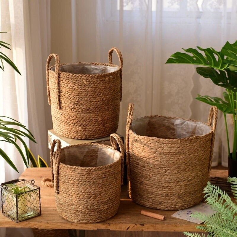 Seagrass Rattan Basket Wicker Storage Basket Plant Pot Storage Laundry Organizer Ebay